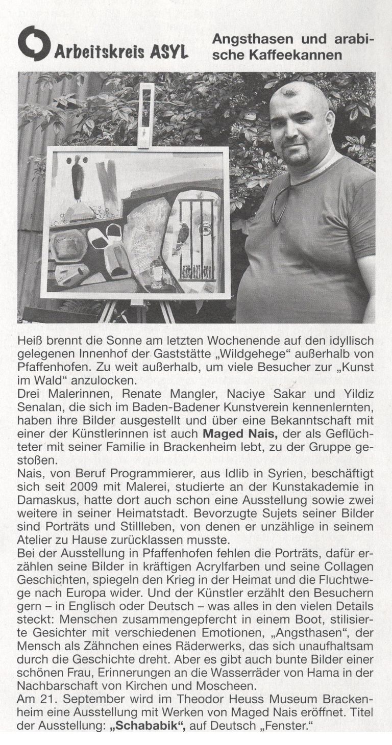 Volunteer participation in the „PLATZ FÜR ASYL IN EUROPA“ project sponsored by the Integration Department of Brackenheim.